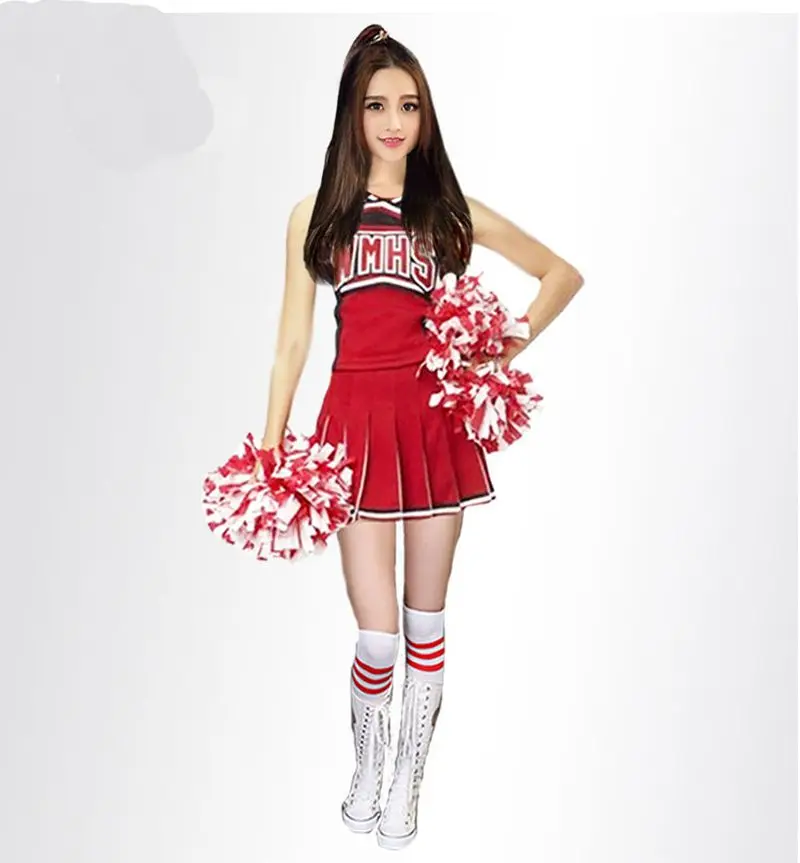 BEST QUALITY Women Cheerleader Costume Cheer Girls Uniform Tops with Skirt High School Uniform Set Competition S