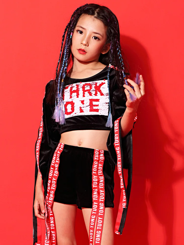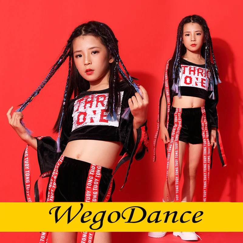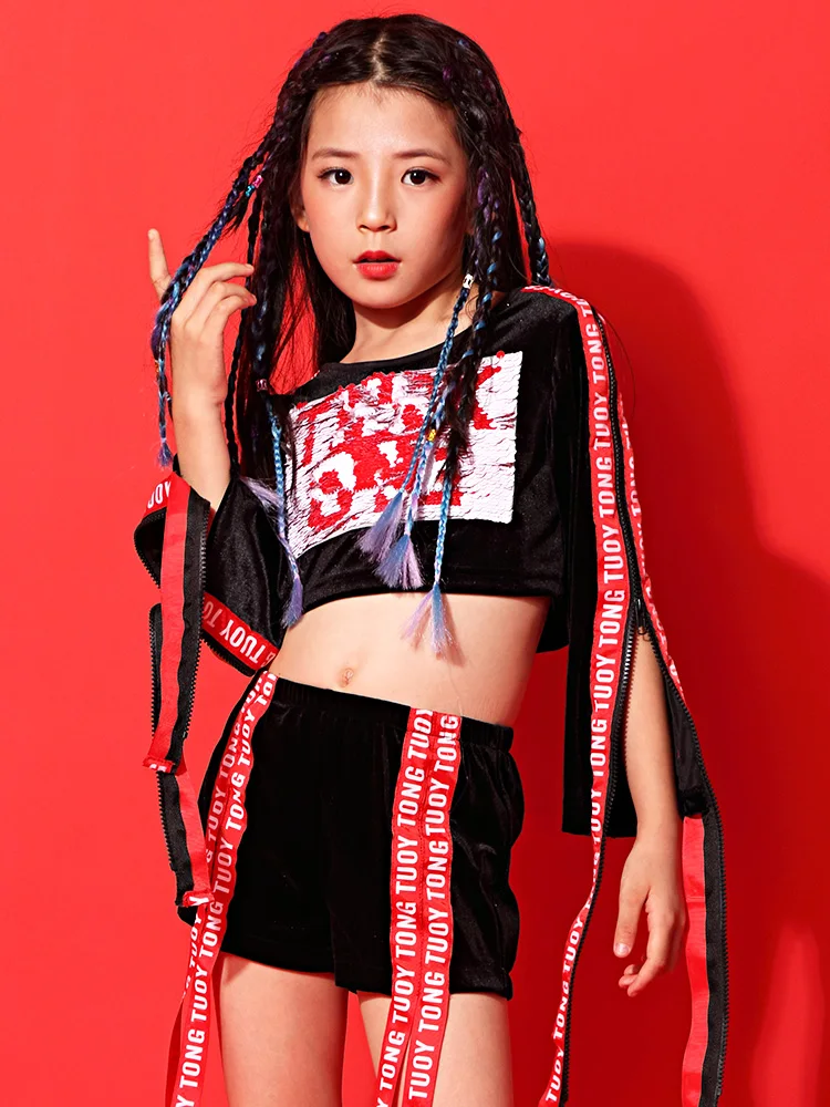 children Stage Jazz Modern Cheerleading clothes Sparkly Stage Jazz Dance Costumes Suit Girls Crop T